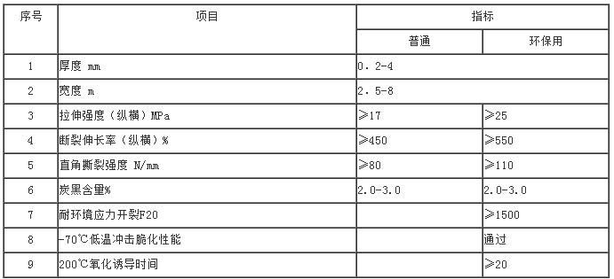 HDPE土工膜技術(shù)指標
